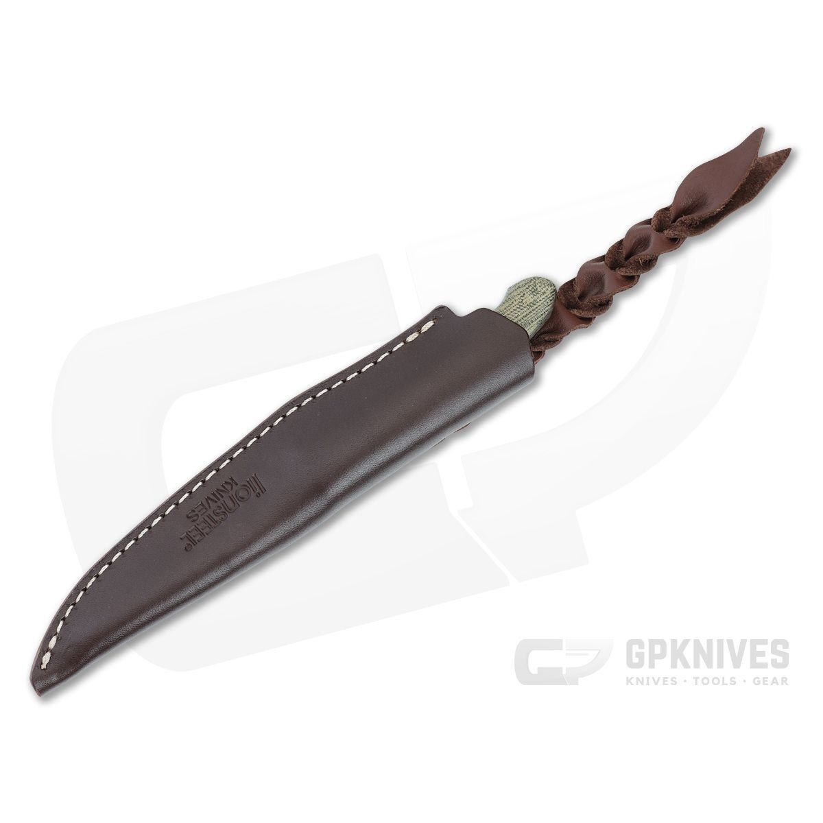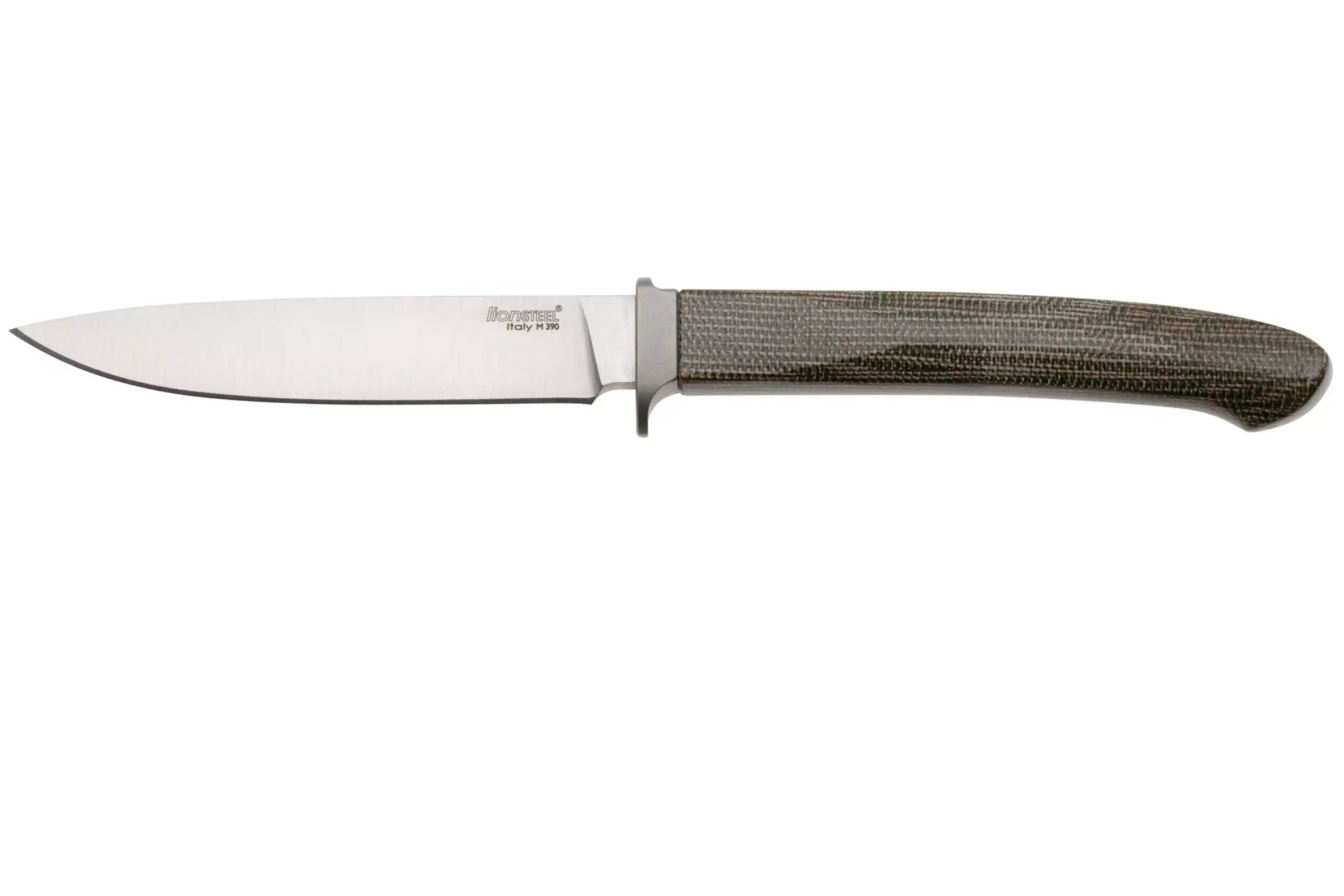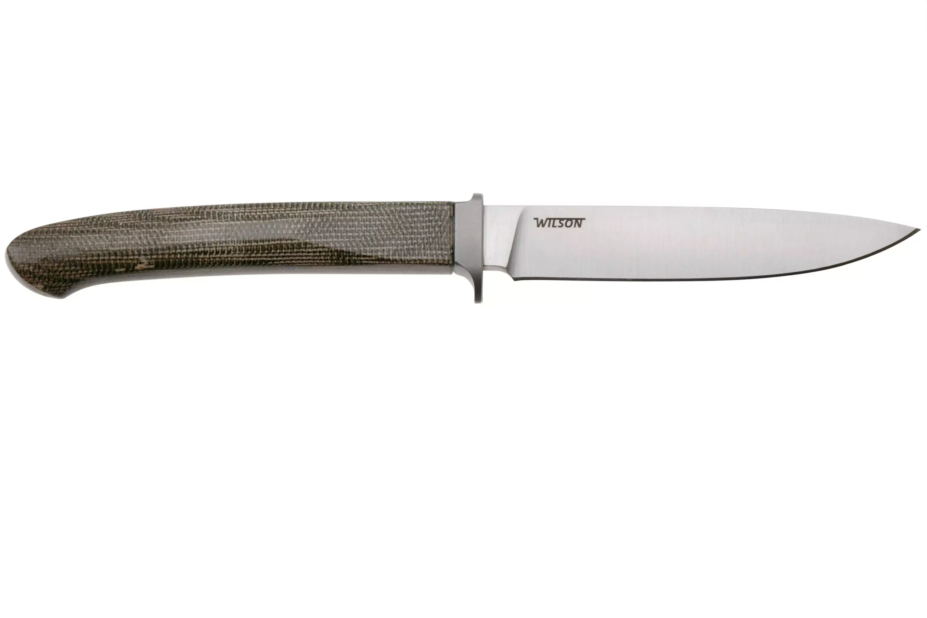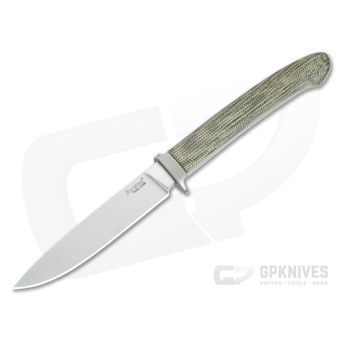 Накладки рукояти ножа изготовлены из Микарты - необычный и очень прочный материал. Слой различных тканей (в основном льняных) заливается специальной смолой и под давлением затвердевает - так получается Микарта. Смола, армированная толстым слоем ткани, получается очень прочной и долговечной, такой материал не боится влаги или больших температур. В руке Микарта ощущается, пожалуй, приятнее всех остальных материалов, но некоторым может показаться слегка скользкой. Имеет просто колоссальный выбор цветов и вариаций, что делает Микарту одним из самых интересных материалов для рукоятей ножей.