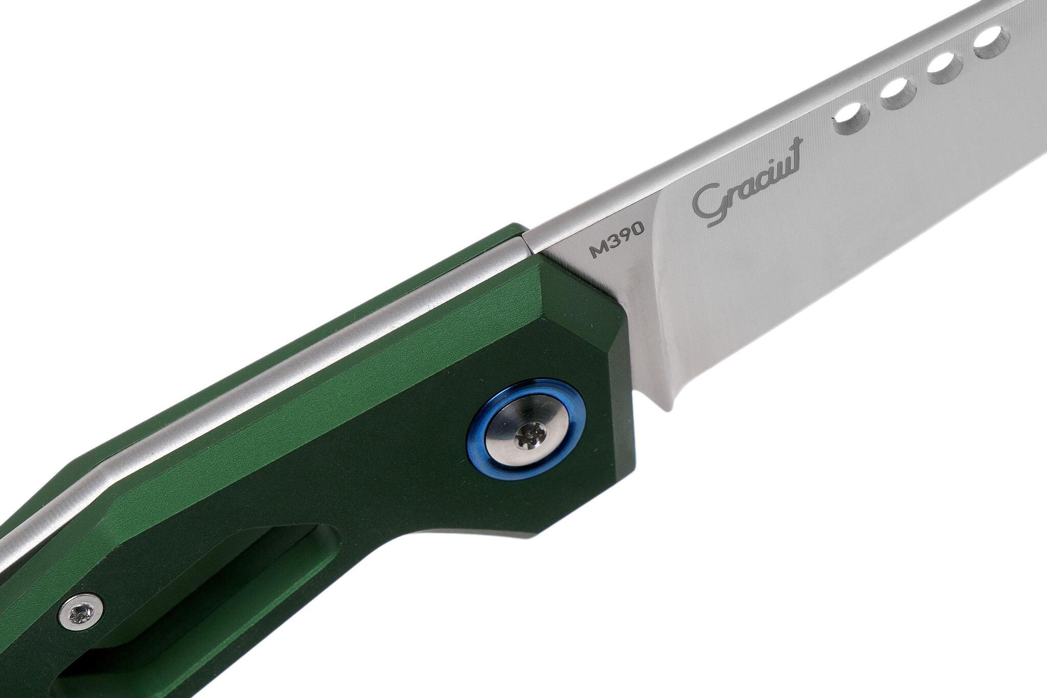 Клинок ножа выполнен из премиальной порошковой стали Bohler Uddeholm M390 - лучшая из премиальных сталей по мнению большинства пользователей и критиков. Если ее характеристики оценить в баллах, то удержание остроты 9/10, прочность 6/10, сопротивление коррозии 7/10 - таким соотношением обладают всего несколько сталей. На данный момент это лучшие показатели характеристик для ножевой стали. Порошковая металлургия, а именно технология Microclean, по которой изготавливается M390, позволили выдавать очень стабильный результат, как по качеству самой стали, так и после ее ТО. Лучшую производительность сталь показывает при твердости 58-62 HRC. Аналогами M390 от других производителей является CTS-204P (производится американской корпорацией Carpenter Technology Corporation), а также CPM-20CV (производство Crucible Industries).