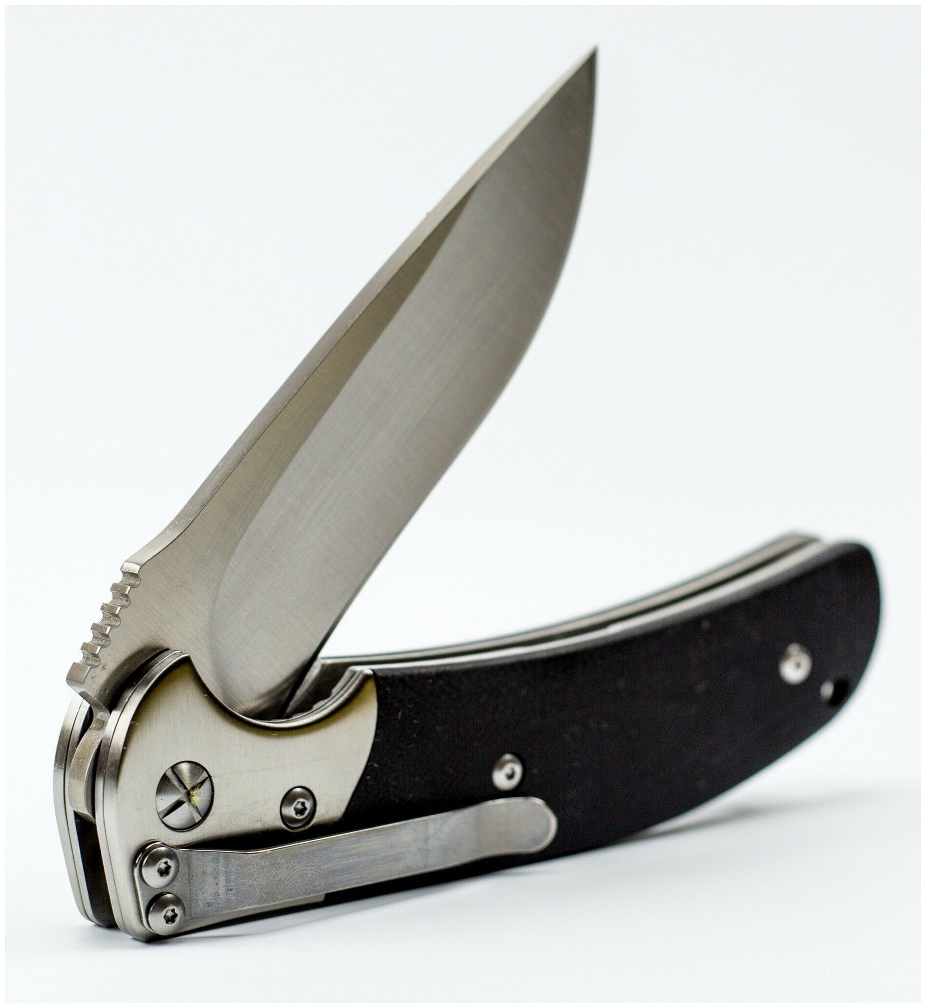 Рукоять ножа выполнена из стекловолокна G10 - пожалуй, один из лучших материалов для рукояти ножа по соотношению свойств, качества и стоимости. Прочность G10 заметно превосходит другие аналогичные материалы. Применятся для складных ножей и фиксов из-за своей легкости и чрезвычайной прочности, имеет большую цветовую палитру. Кроме того, не деформируется (не разрушается) с течением времени. Существенным плюсом G10 является легкость нанесения текстуры, что позволяет максимально увеличить цепкость рукояти, при этом не наминая ладонь пользователя.