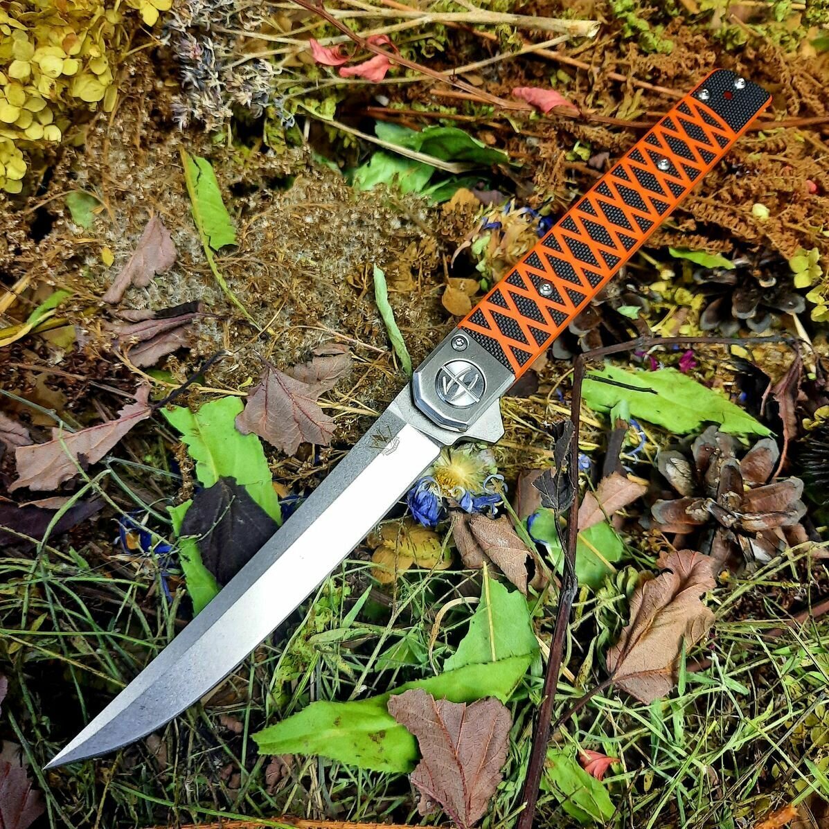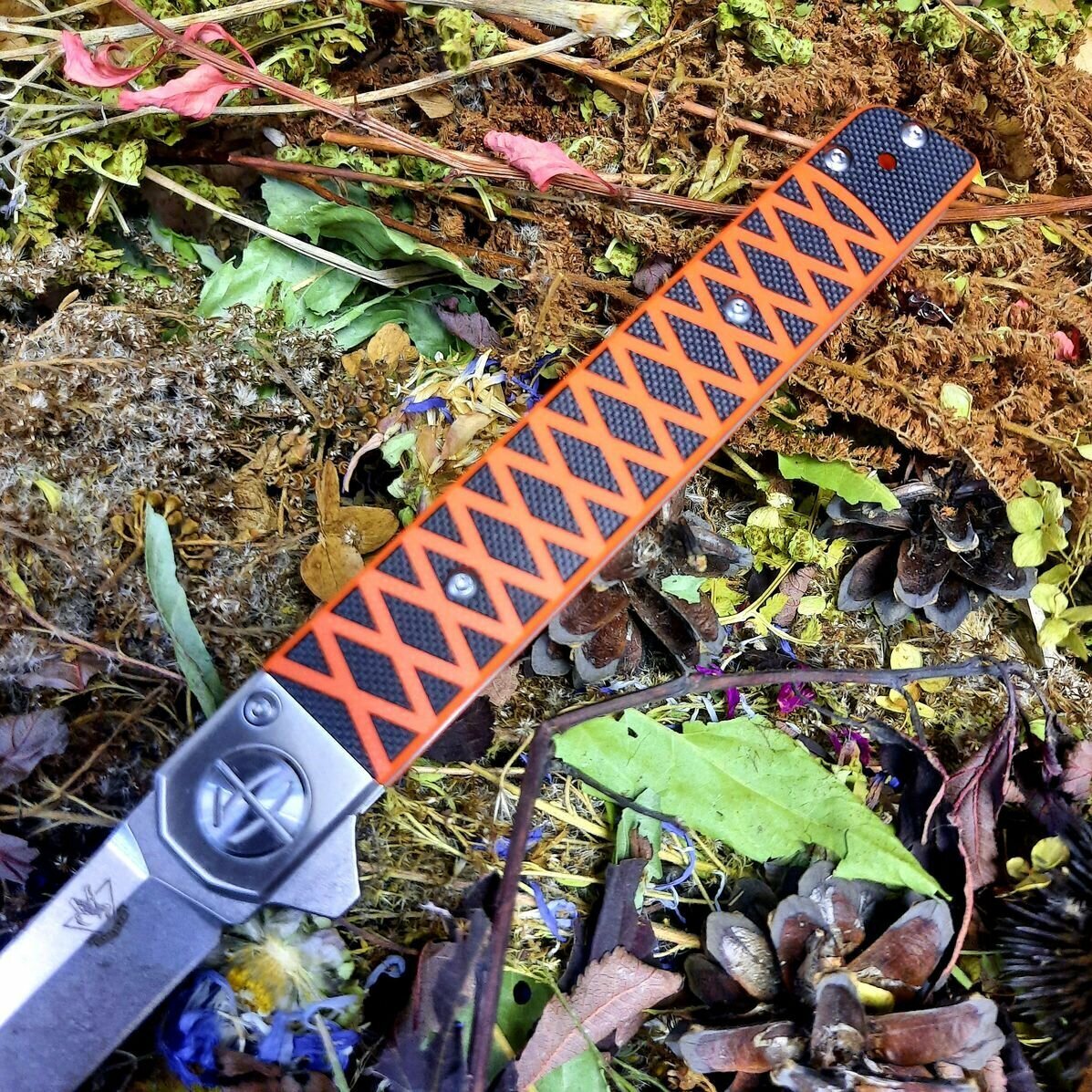 Рукоять ножа выполнена из стекловолокна G10 - пожалуй, один из лучших материалов для рукояти ножа по соотношению свойств, качества и стоимости. Прочность G10 заметно превосходит другие аналогичные материалы. Применятся для складных ножей и фиксов из-за своей легкости и чрезвычайной прочности, имеет большую цветовую палитру. Кроме того, не деформируется (не разрушается) с течением времени. Существенным плюсом G10 является легкость нанесения текстуры, что позволяет максимально увеличить цепкость рукояти, при этом не наминая ладонь пользователя.