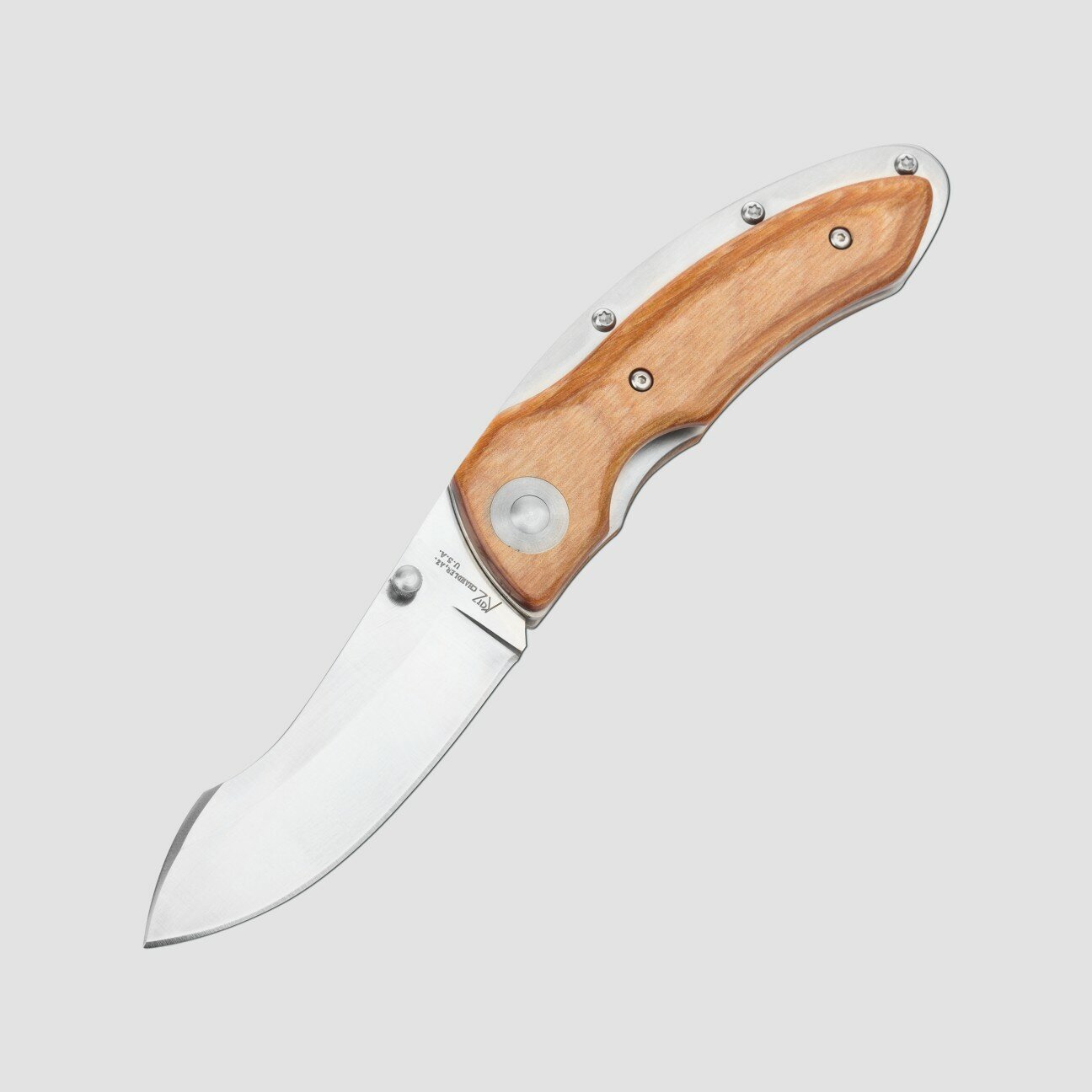 Рукоять ножа изготовлена из ламинированной древесины - своего рода дерево-пластик или же стабилизированная древесина. Дерево под большим давлением пропитывается специальной смолой, которая за несколько дней полностью проникает в пористую структуру древесины. После полного застывания этот материал обрабатывают и и применяют в качестве рукоятей для ножей. Как следствие - характеристики ламинированной древесины выше, чем у дерева или пластика по отдельности. Такая рукоять не впитывает влагу, в отличии от обычного дерева, менее скользкая, так как имеет шероховатую древесную текстуру. Естественно, показатель прочности значительно больше, чем у обычного дерева или просто пластика. Отличный материал, сохранивший вид дерева и получивший усиленные характеристики пластика. В качестве основы можно использовать самые различные сорта древесины.