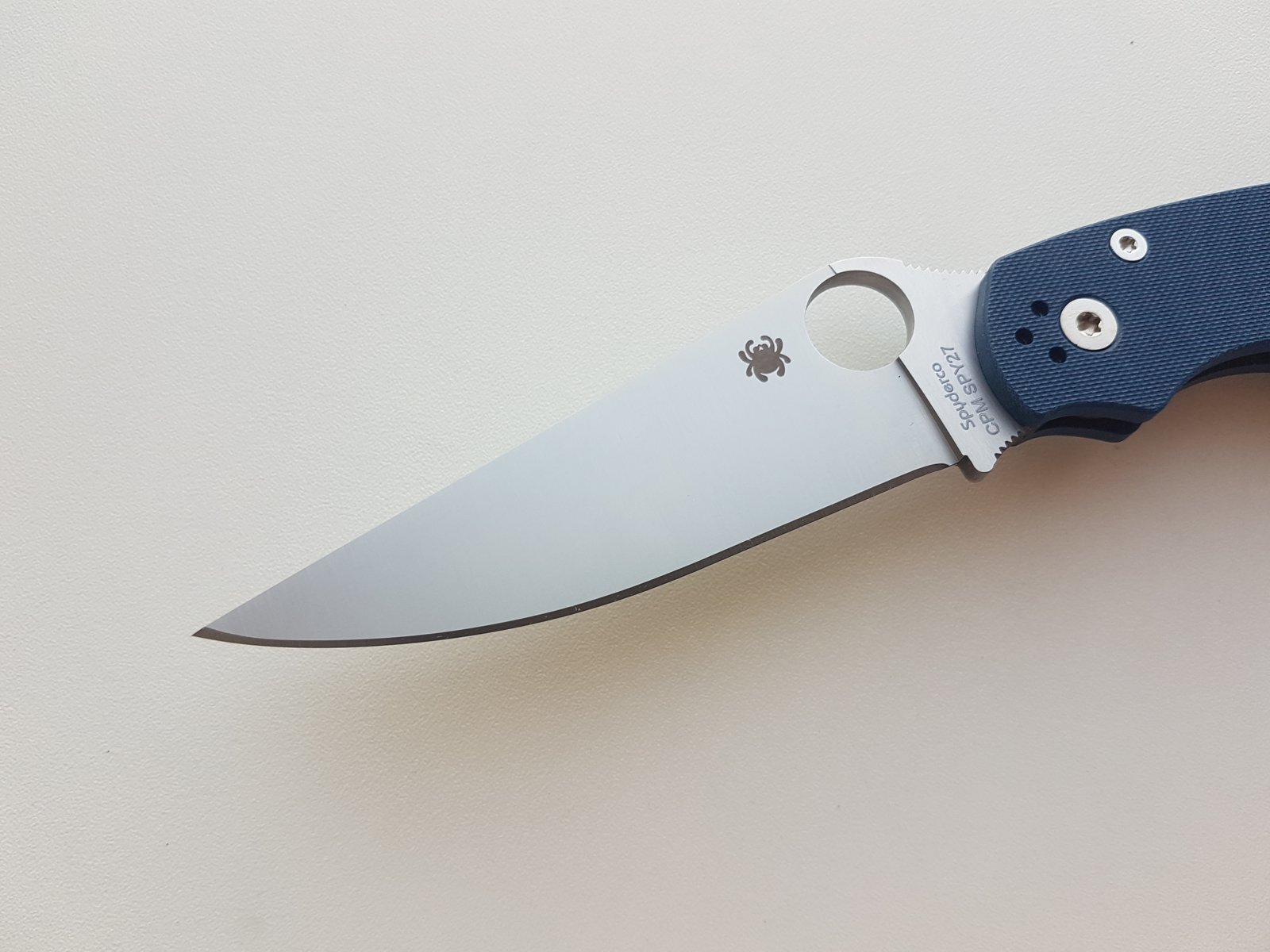 Сталь CPM-SPY27 - авторская сталь компании Spyderco. Эта сталь, производимая компанией Crucible эксклюзивно для Spyderco. Сталь по свойствам несколько похожа на S35VN, но с повышенным содержанием Ниобия и Никеля с пониженным содержанием Хрома и Ванадия а ещё в нее добавили 1,5% Кобальта. Ожидается, что полученная сталь будет обладать твердостью и коррозионной стойкостью, аналогичными S30V - S45VN. Удержание остроты, вероятно, будет сходим с сталью S35VN. Ударная вязкость, вероятно, немного лучше, чем у S35VN. И заточка, вероятно, немного проще чем у S35VN. Так как данная сталь является патентной для компании Spyderco, то на данный момент не известен точный хим состав и "рецептура приготовления" этой стали. Но пользователи по всеми миру исходя из опыта пользования, относят SPY-27 ка лидерам среди таких сталей как: S30V - S45VN, VG10, B75, Super Gold 2.
